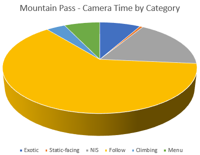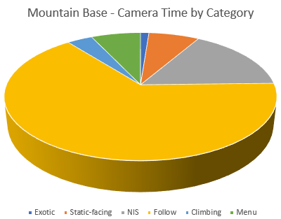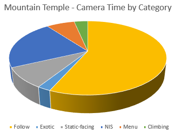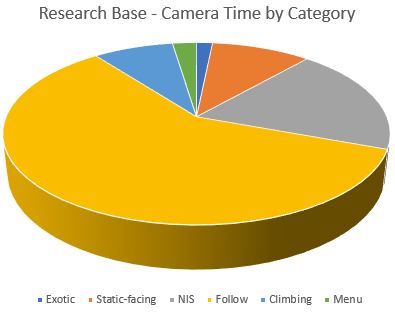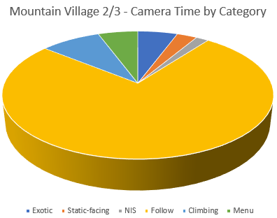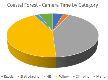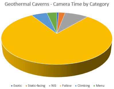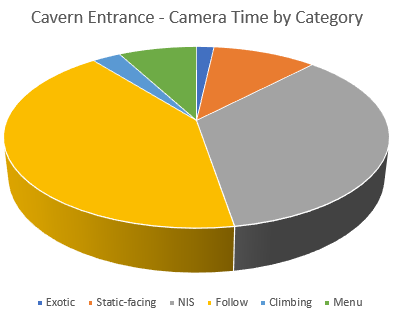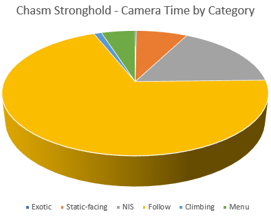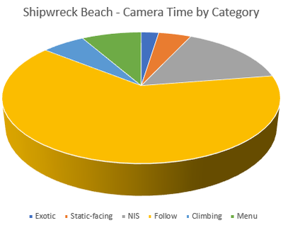 While playing through Tomb Raider, I got the impression of a large variety of ambient VFX that influenced my experience by breaking up the levels in a way I had never seen before. Each new area or moment had new geometry or perspectives, and also immediately indicated its' uniqueness by throwing particles in my face from almost every direction. Completing this analysis revealed that they achieved this impression with a 55:45 ratio of minutes with ambient environmental VFX to minutes with no VFX. My data is based on a 7.5 hour playthrough with the side content cut out. As a player, the experience is much larger than this ratio indicates because the impact is greater than the implementation.